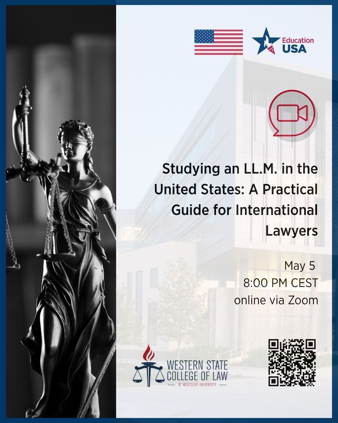 Join EducationUSA and Western State College of Law for a webinar "Studying an LL.M. in the United States: A Practical Guide for International Lawyers" on May 5 at 8:00 PM CEST.
